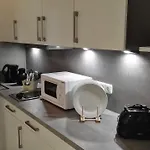 Hier gibt es ein privates Bad mit einer getrennten Toilette und einer Dusche. Diese Unterkunft ist auch mit einem Satellitenfernseher und einem Flachbildfernseher mit Satellitenkanälen ausgestattet und bietet Sicherheitseinrichtungen wie Rauchmelder. Das Apartment bietet den Gästen einen Haartrockner und Badelaken im Badezimmer.